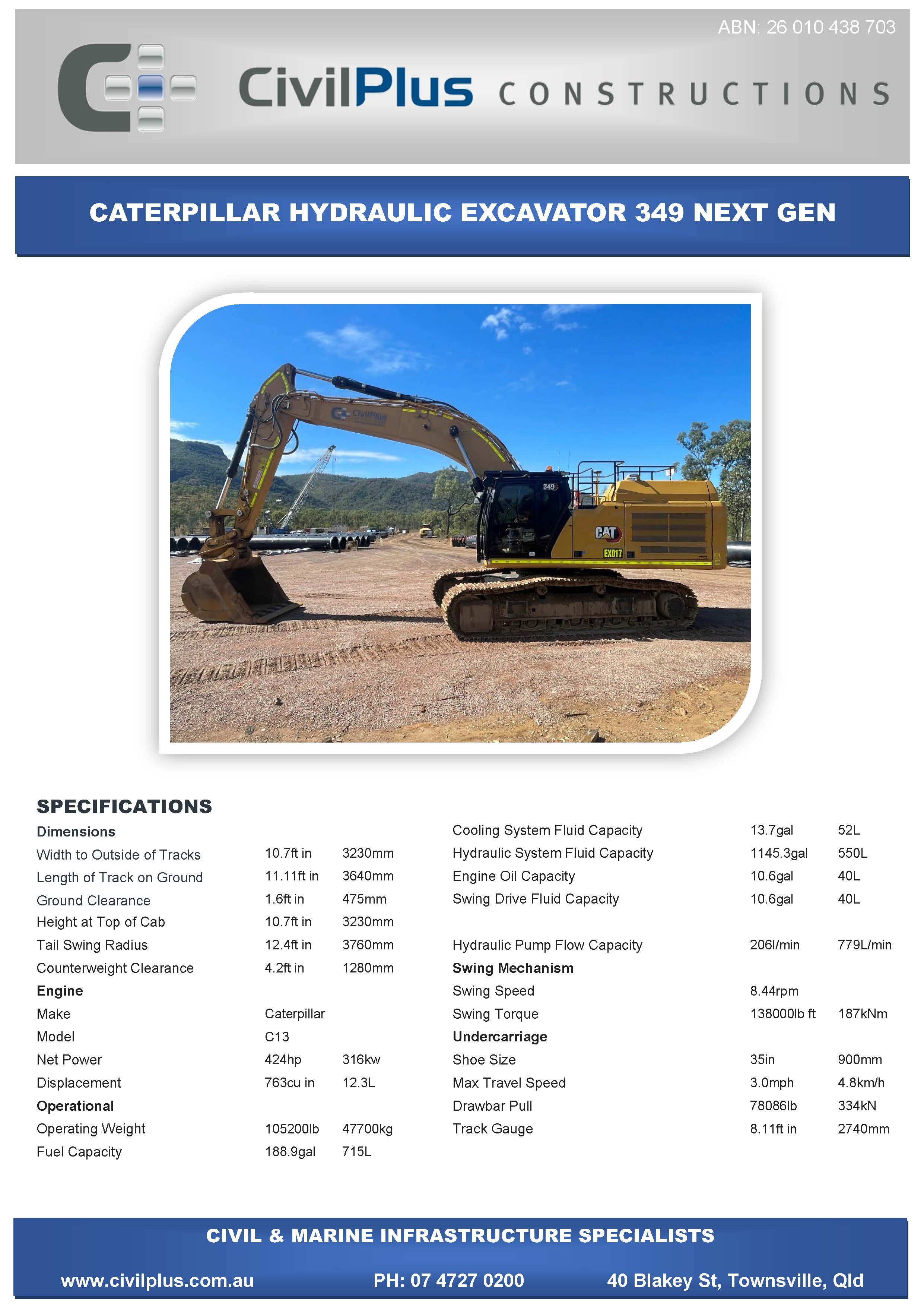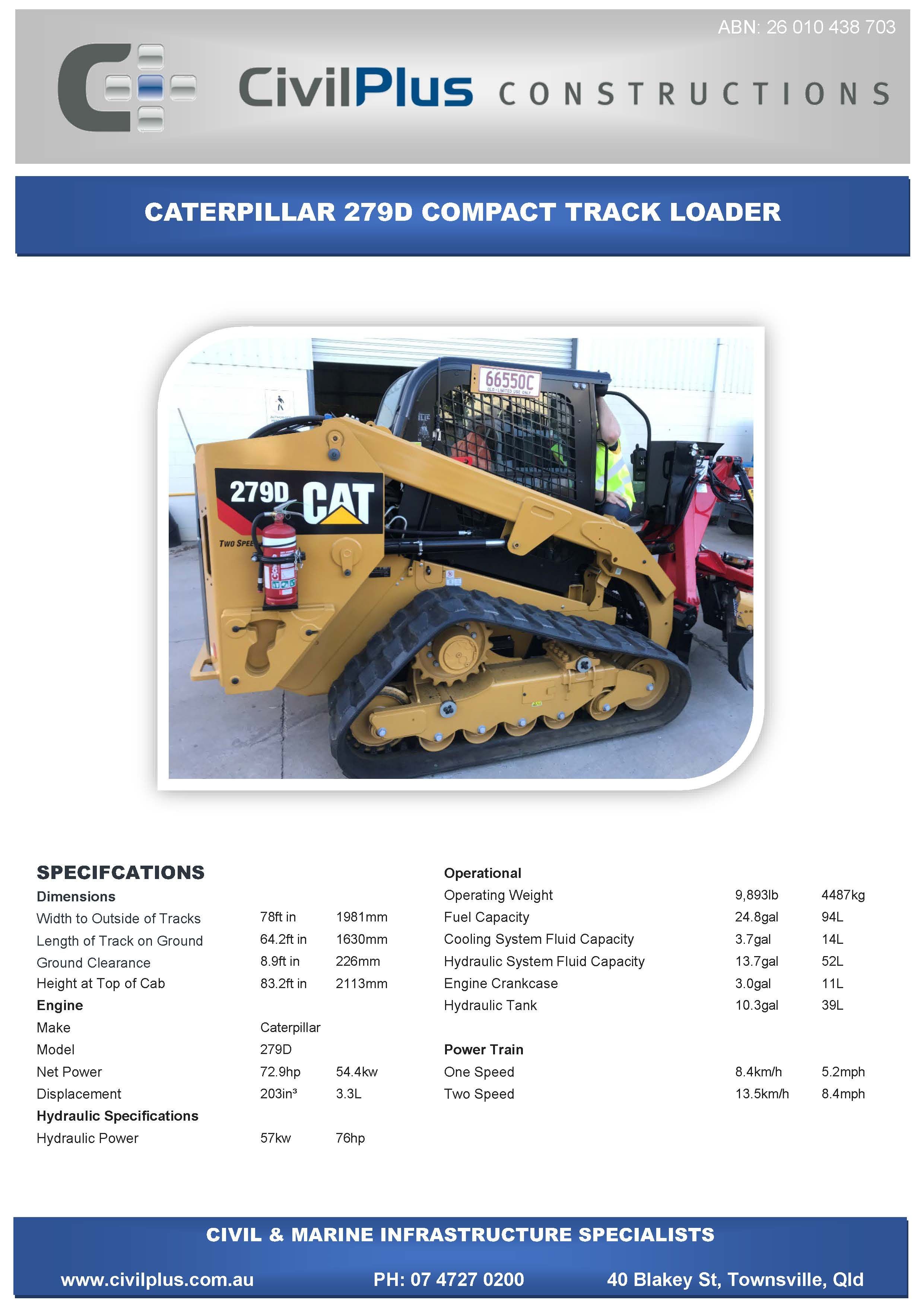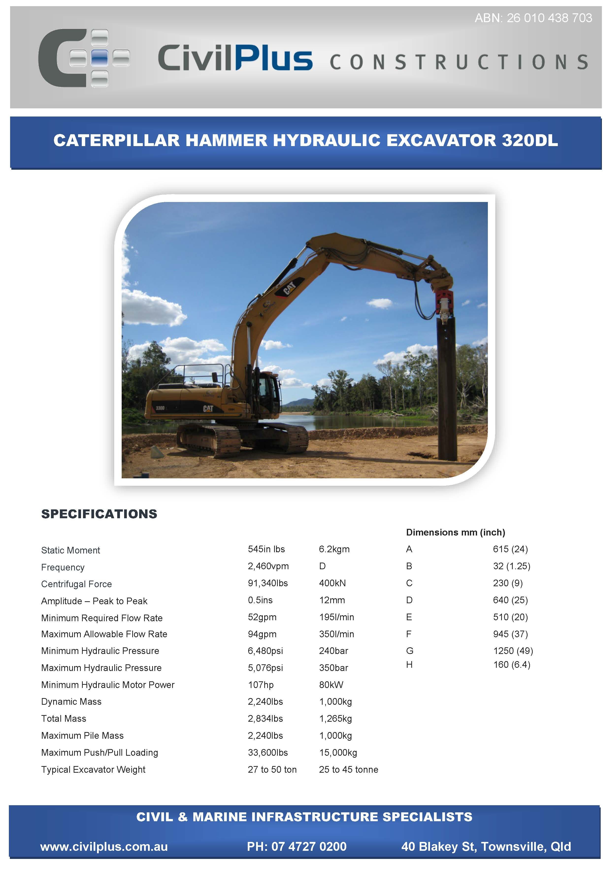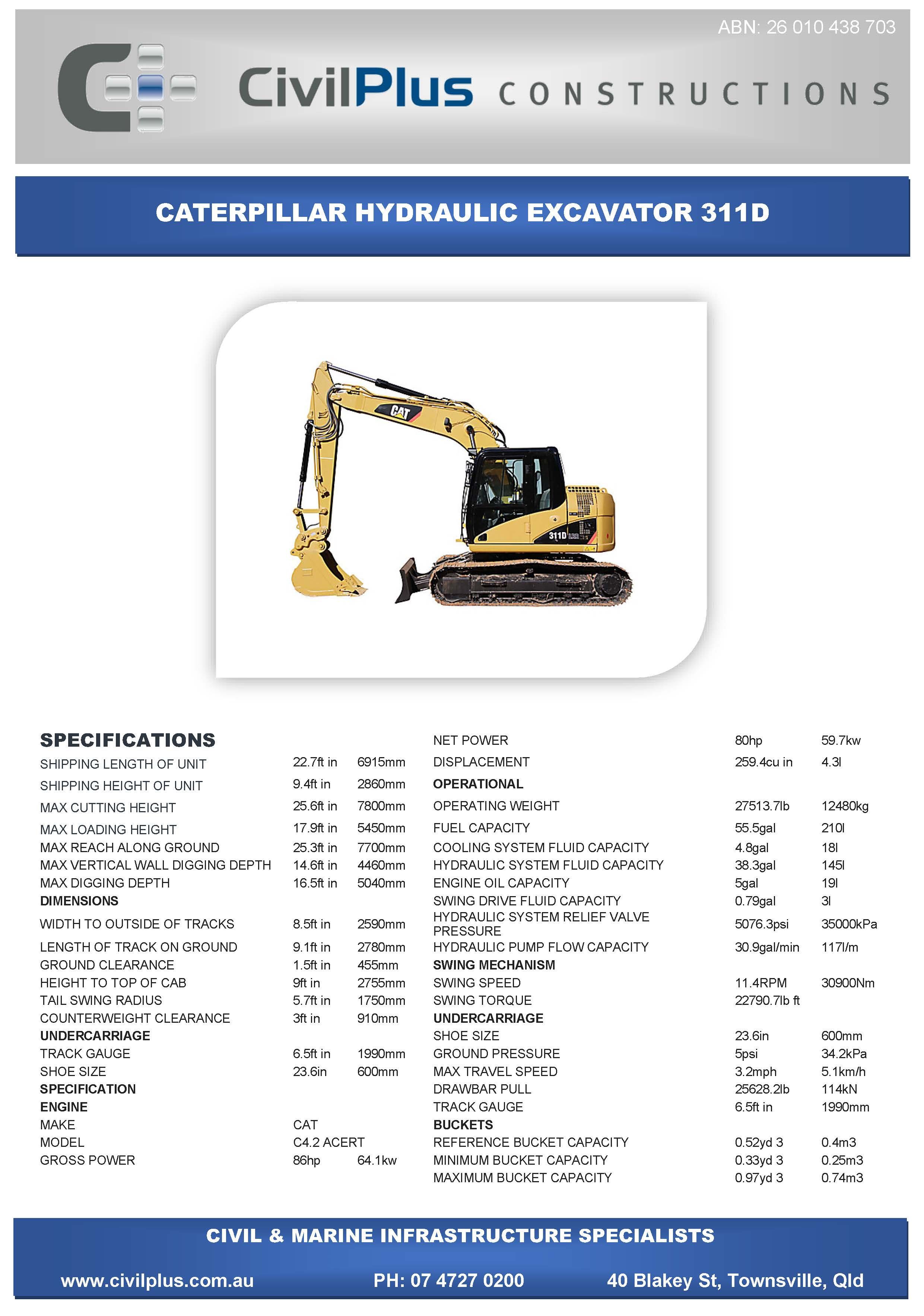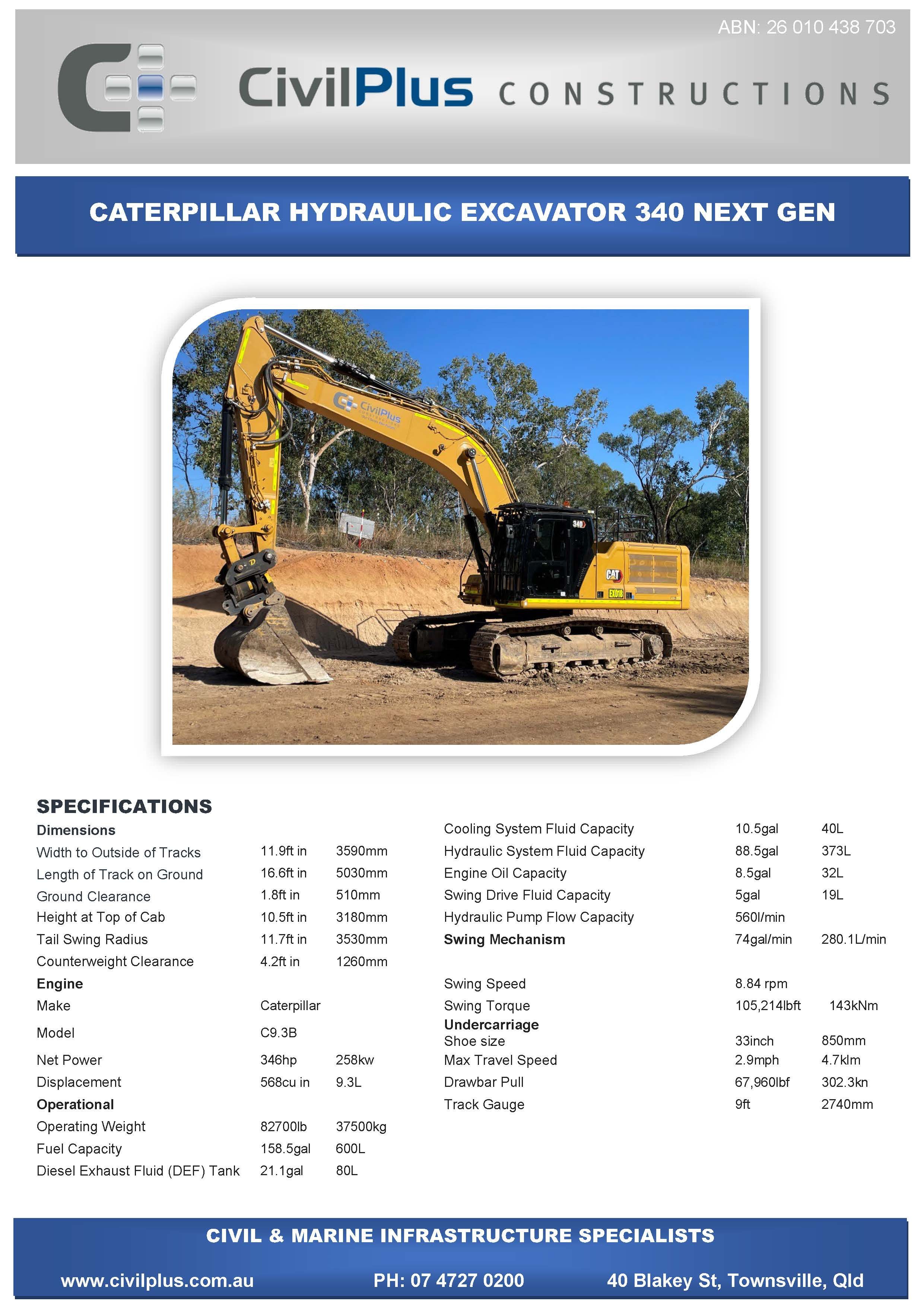 CivilPlus have an extensive list of modern plant and attachments for all types of civil and marine constructions. All excavators and backhoes are hydraulic burst protected and have rated SWL to comply with WHS Legislation. All plant and equipment is meticulously maintained and can be supplied with its full service and repair history which will provide peace of mind when it comes to reliable plant that meets WHS & Environmental Legislation.