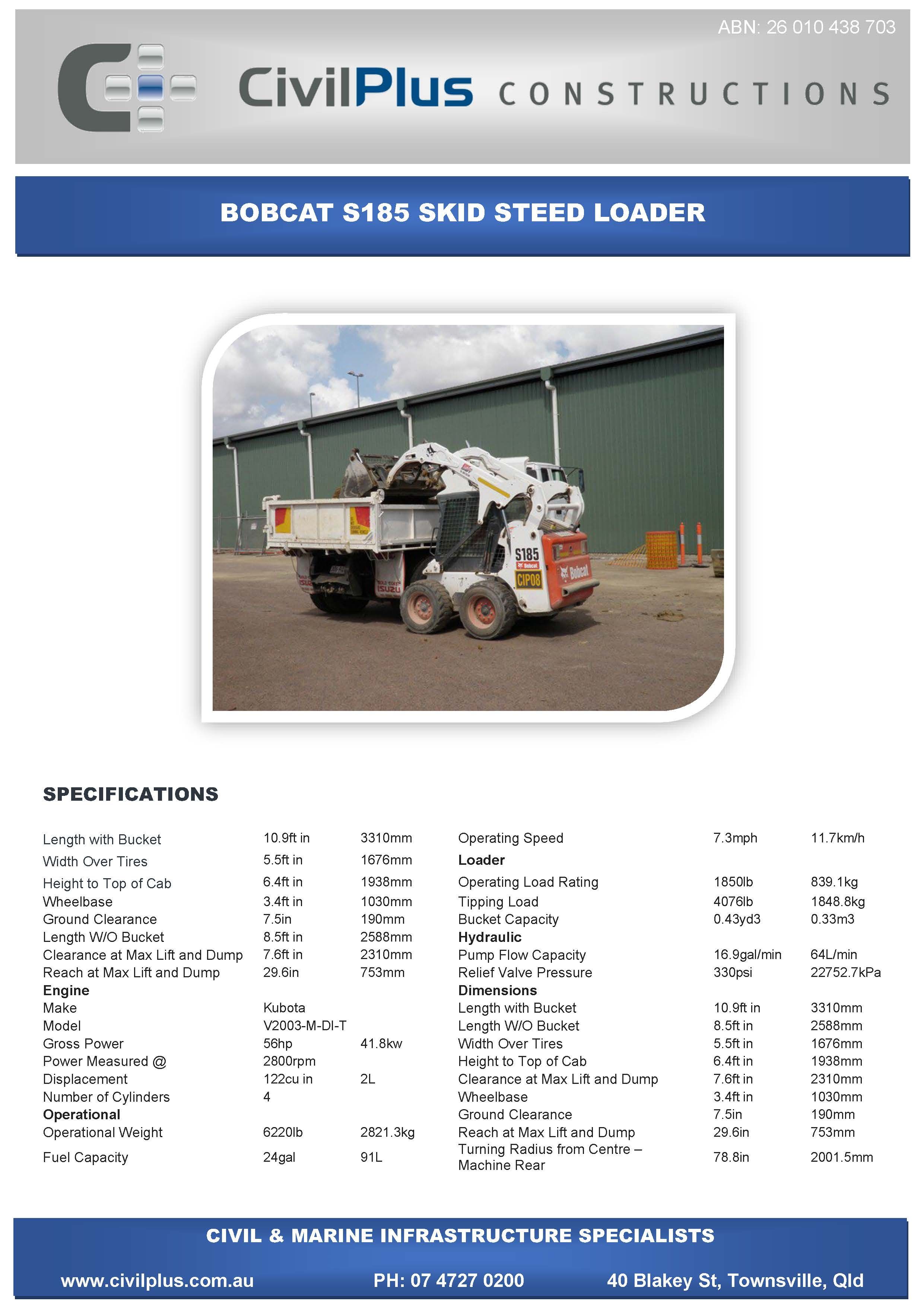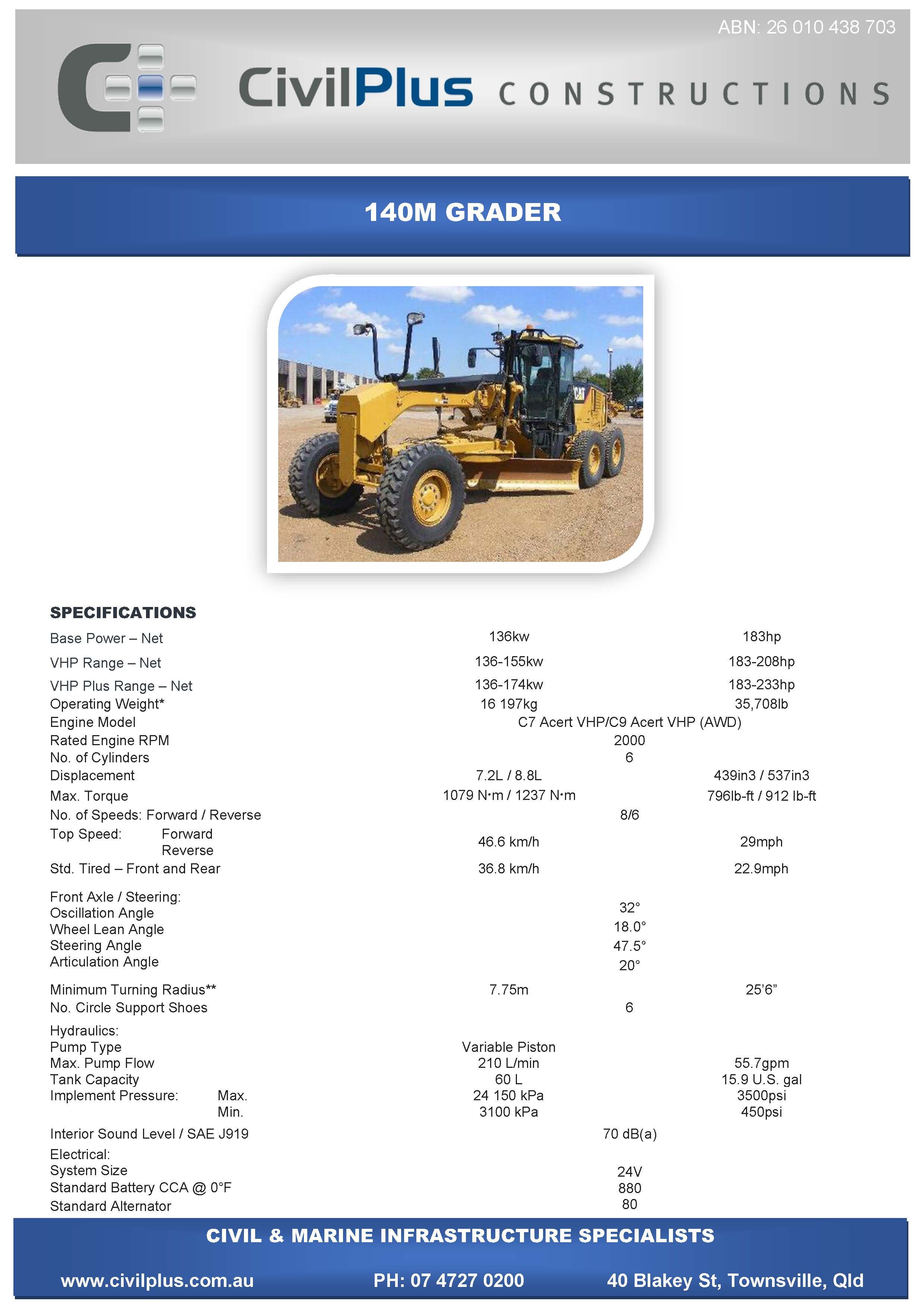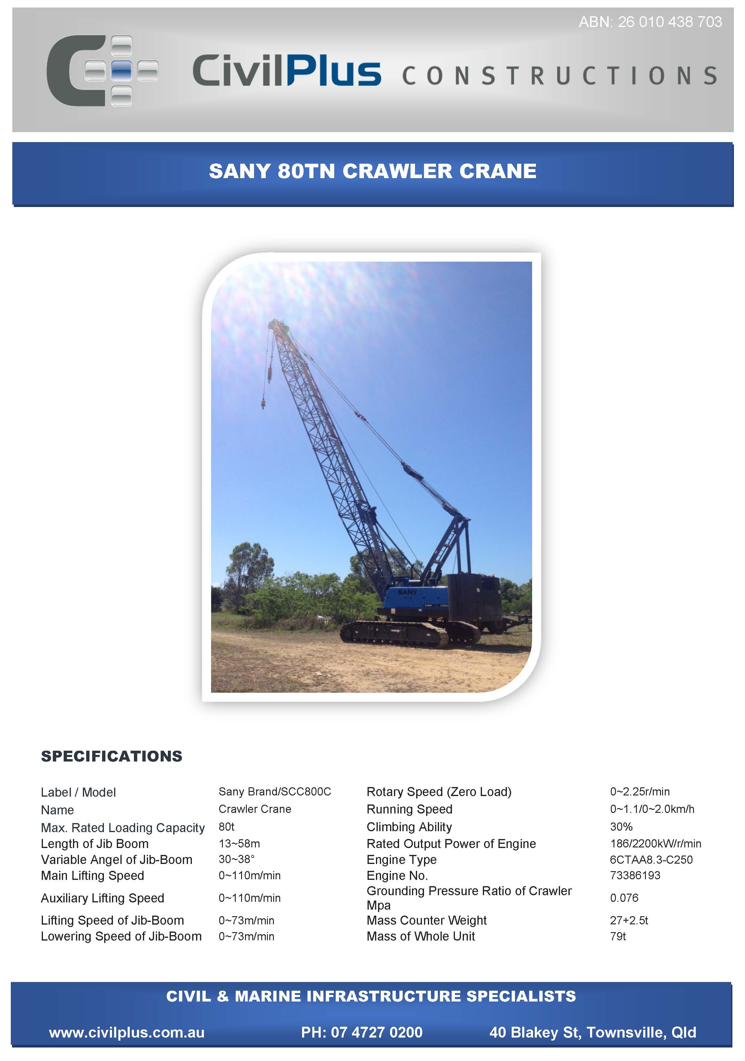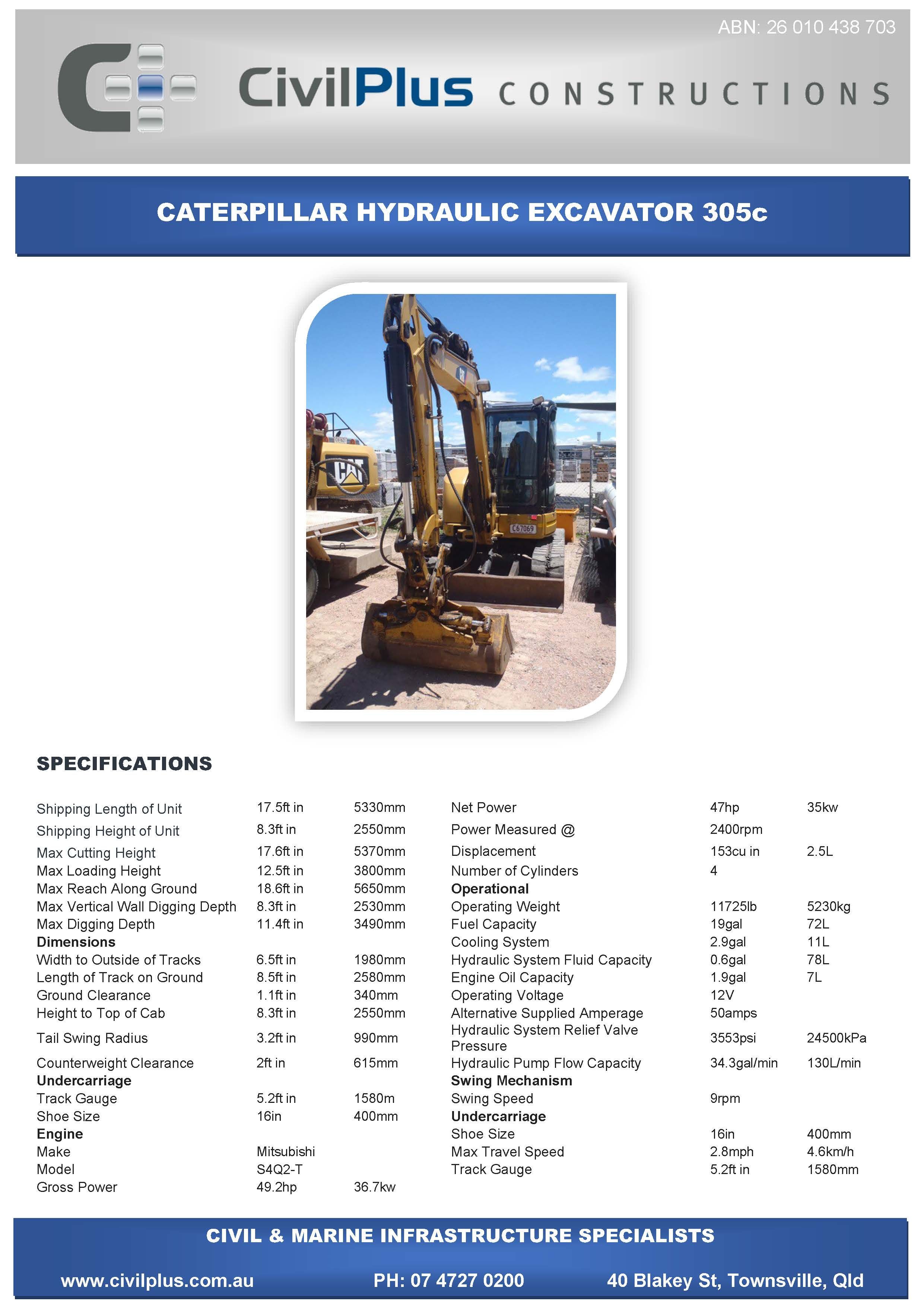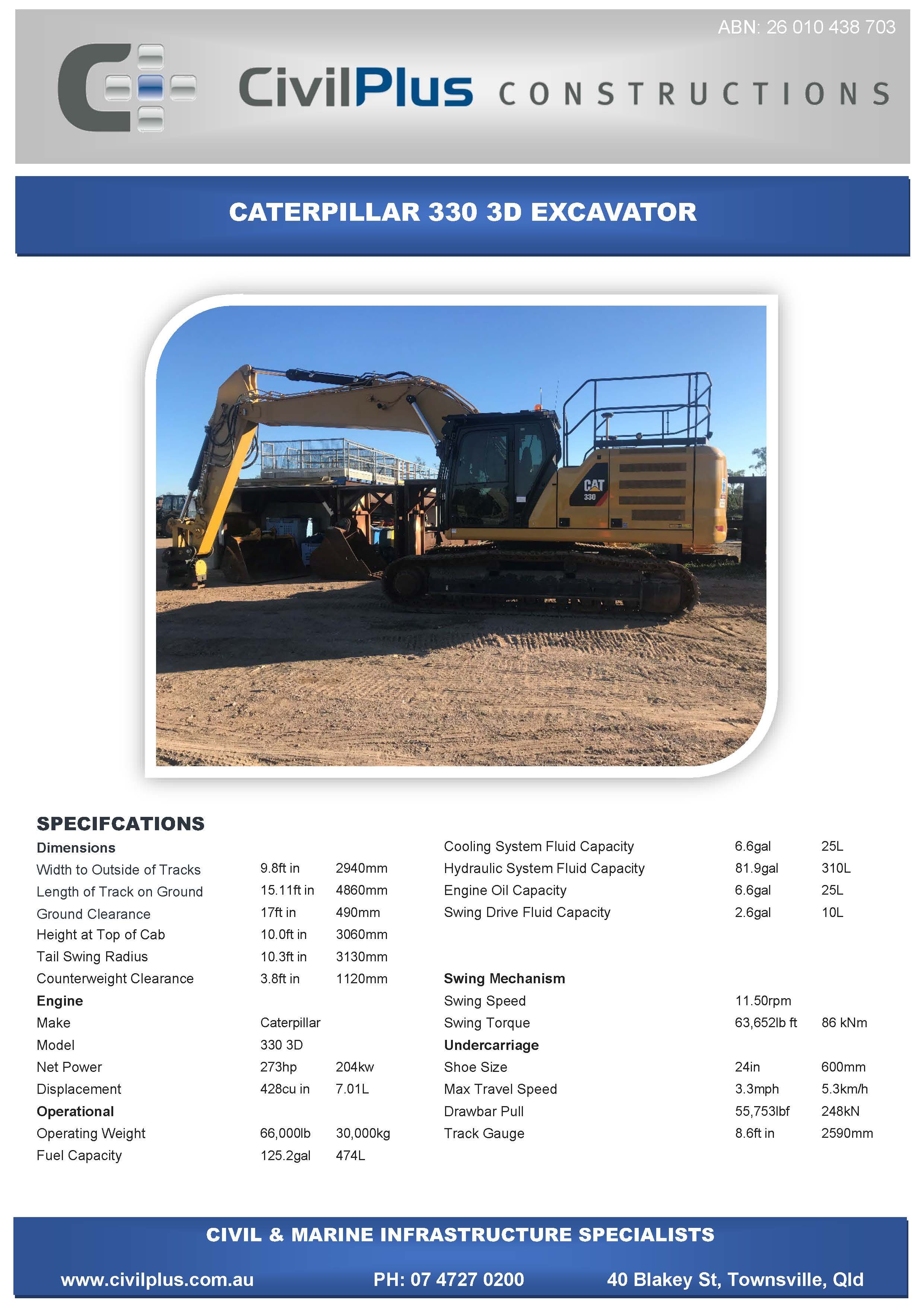 CivilPlus have an extensive list of modern plant and attachments for all types of civil and marine constructions. All excavators and backhoes are hydraulic burst protected and have rated SWL to comply with WHS Legislation. All plant and equipment is meticulously maintained and can be supplied with its full service and repair history which will provide peace of mind when it comes to reliable plant that meets WHS & Environmental Legislation.