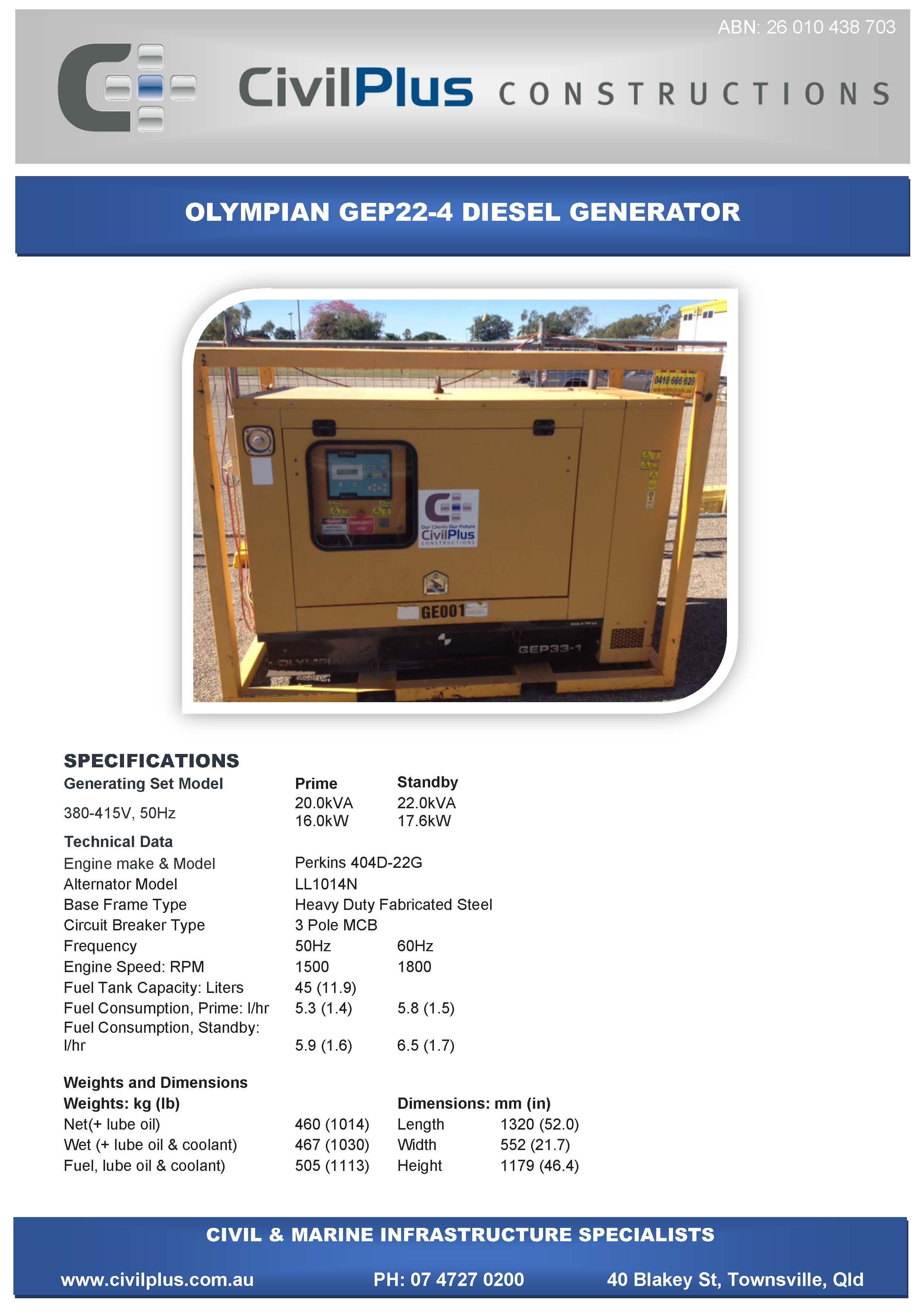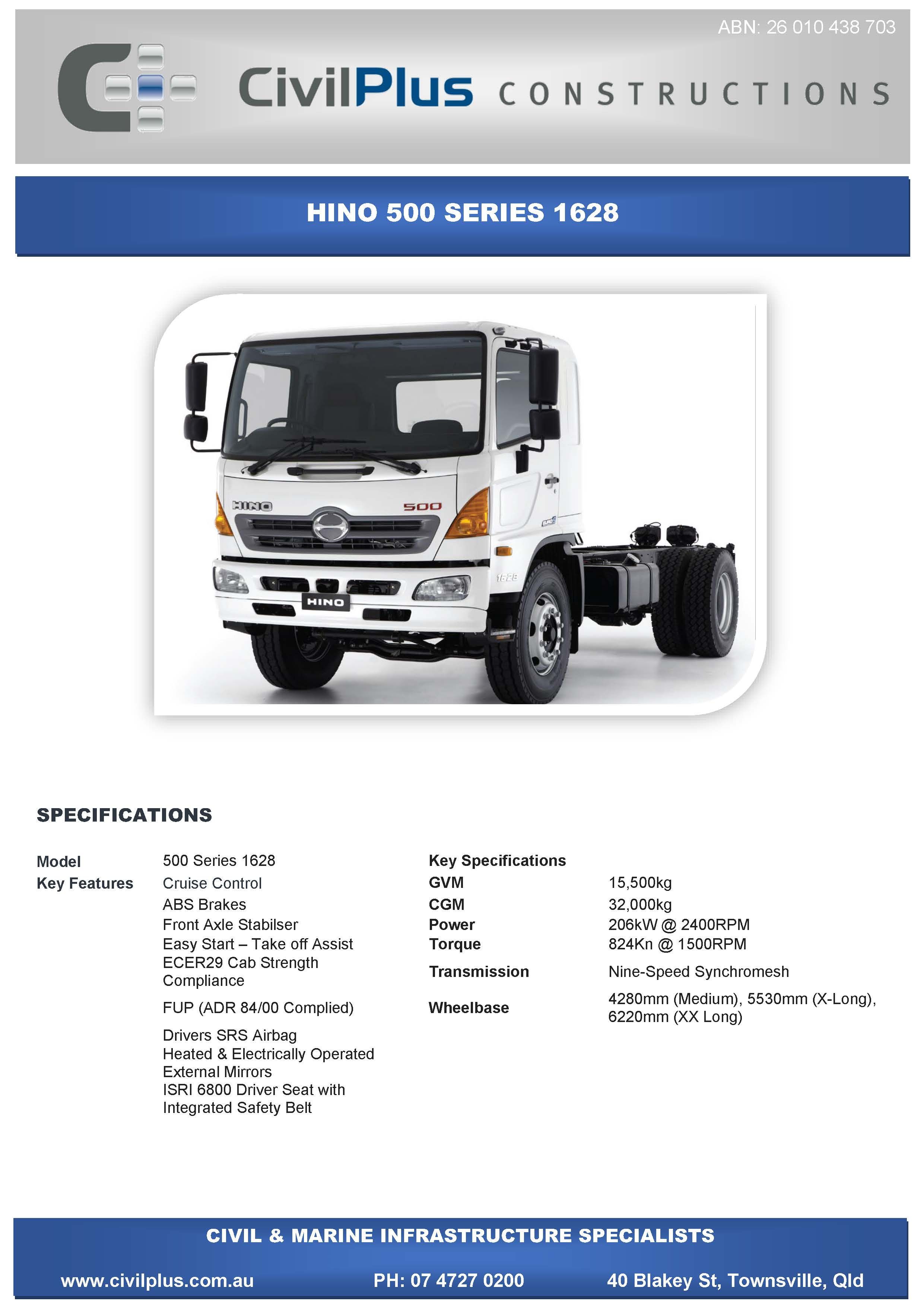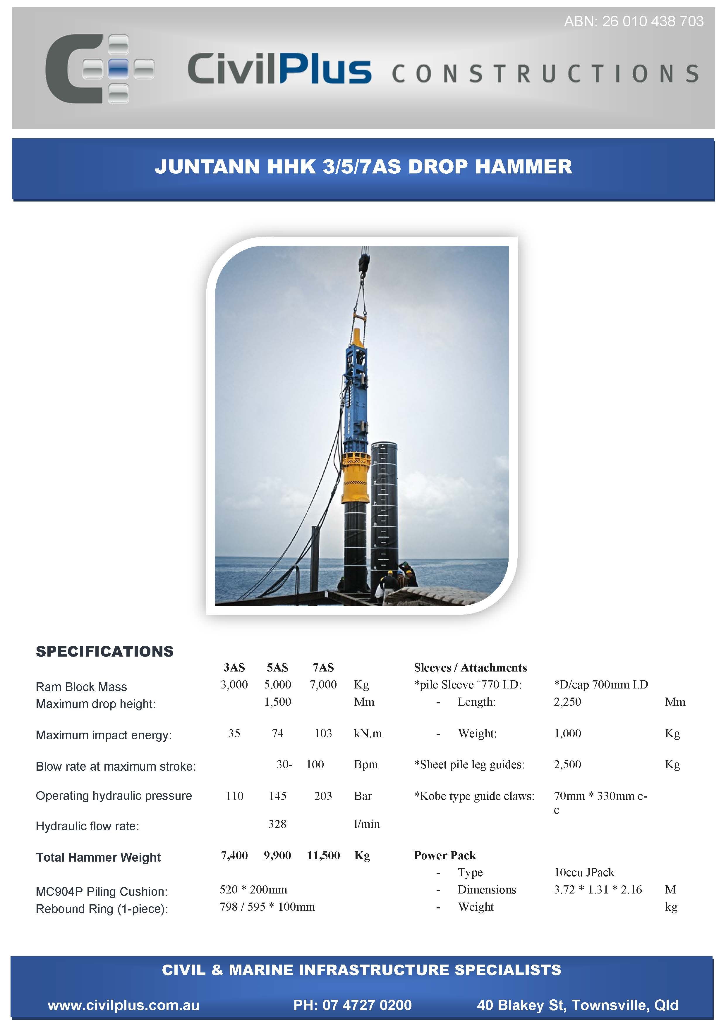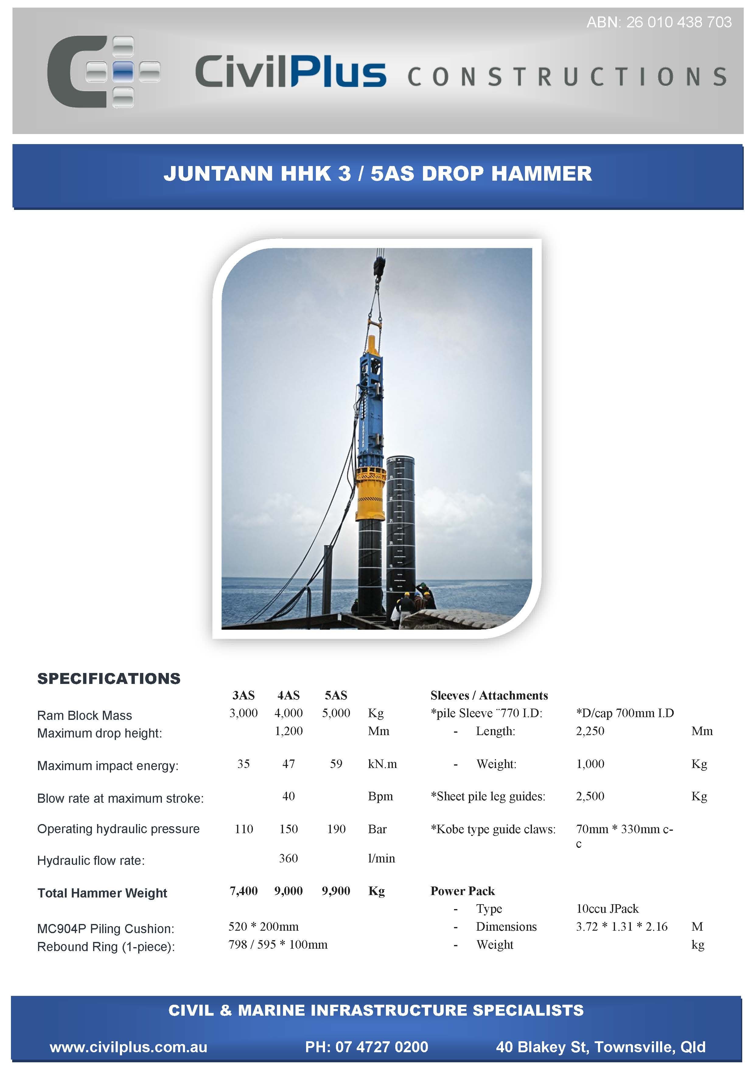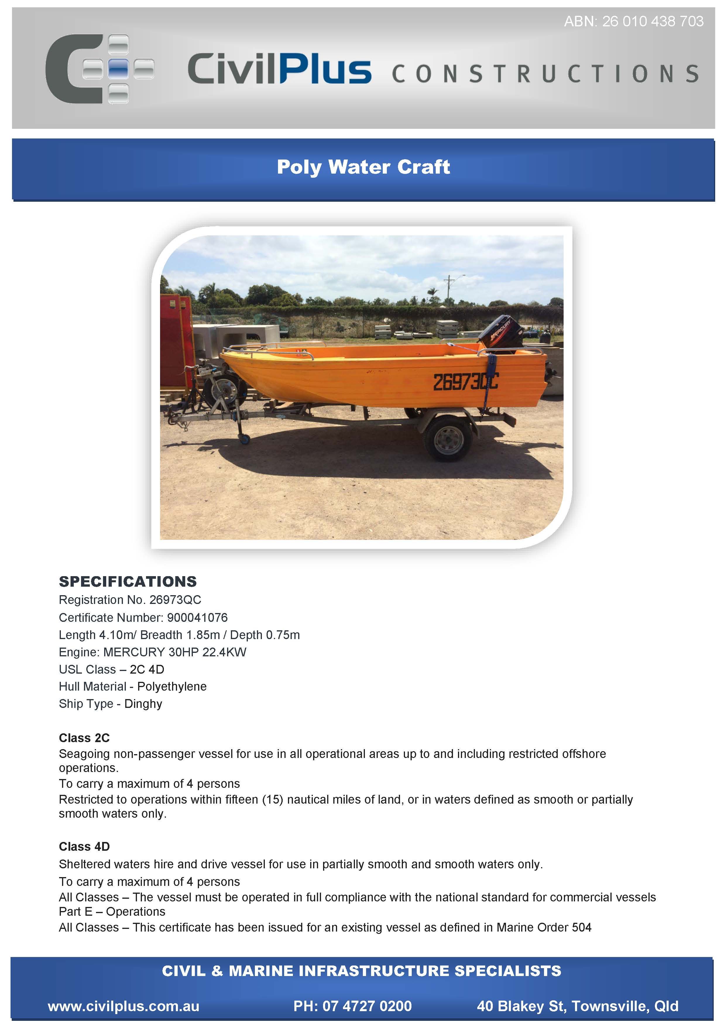CivilPlus have an extensive list of modern plant and attachments for all types of civil and marine constructions. All excavators and backhoes are hydraulic burst protected and have rated SWL to comply with WHS Legislation. All plant and equipment is meticulously maintained and can be supplied with its full service and repair history which will provide peace of mind when it comes to reliable plant that meets WHS & Environmental Legislation.