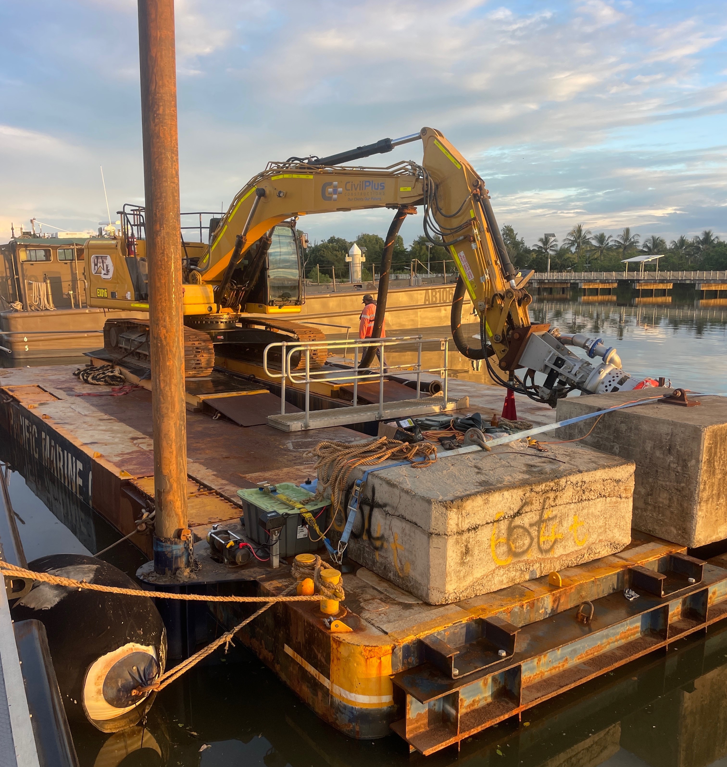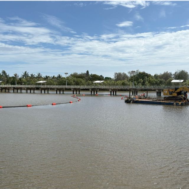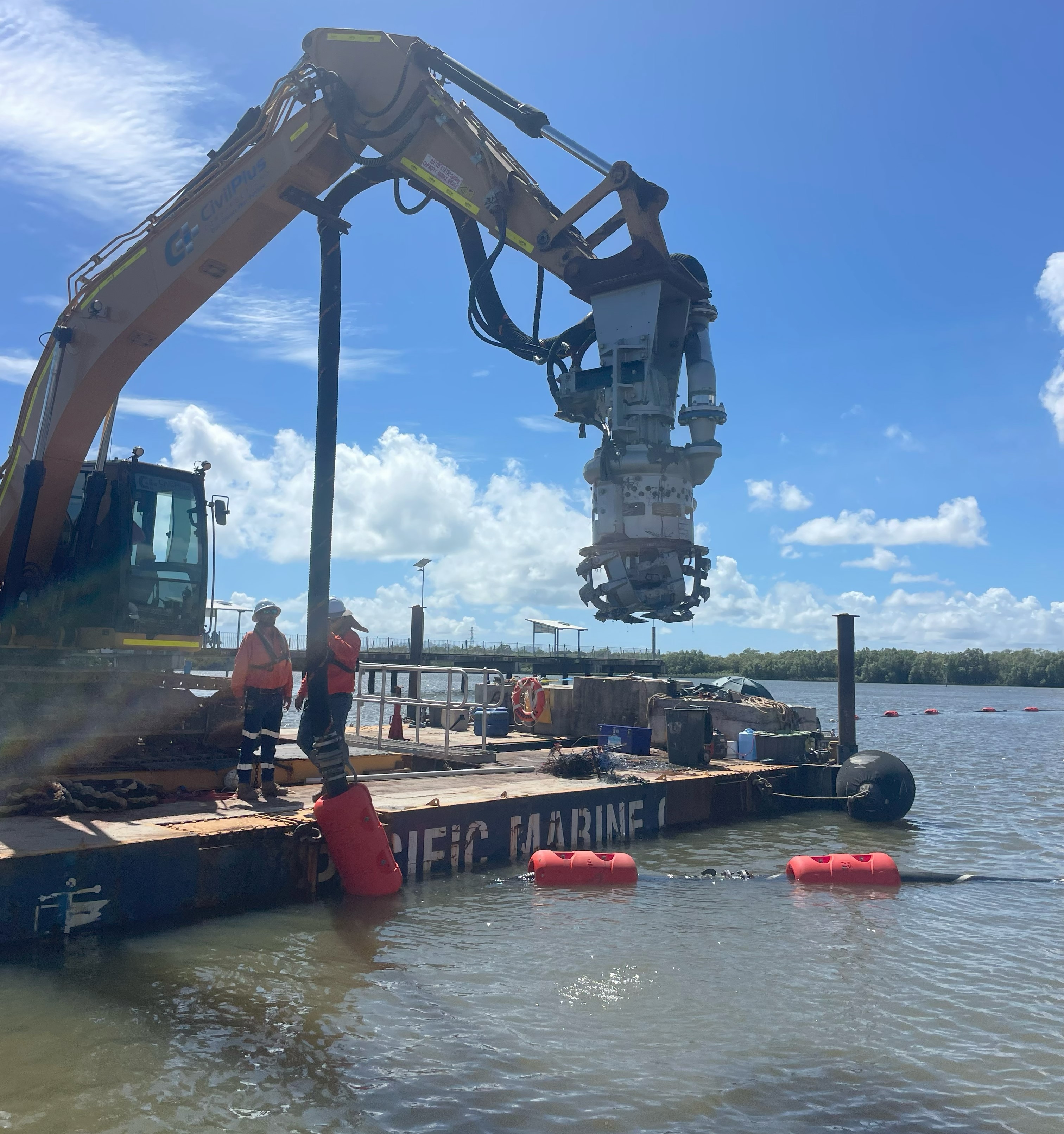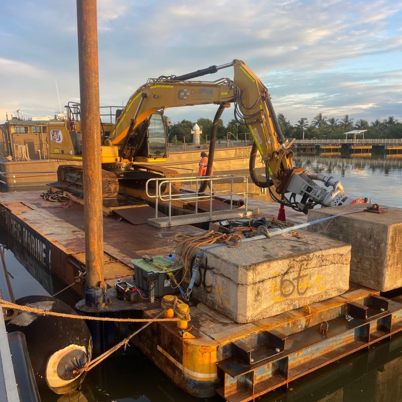 CivilPlus Constructions was engaged to perform dredging in Ross River fronting the Australian Defence Force's Ross Island Barracks in Townsville. CivilPlus Constructions dredged 4000 m3 of seabed by cutter suction and pumped the spoil to the barracks storage pond by floating delivery pipe. CivilPlus Constructions also neutralised and disposed of the storage pond spoil from the previous project. Neutralisation required treatment with lime and verification testing. CivilPlus Constructions completed the works without affecting the barracks or vessel operations. |