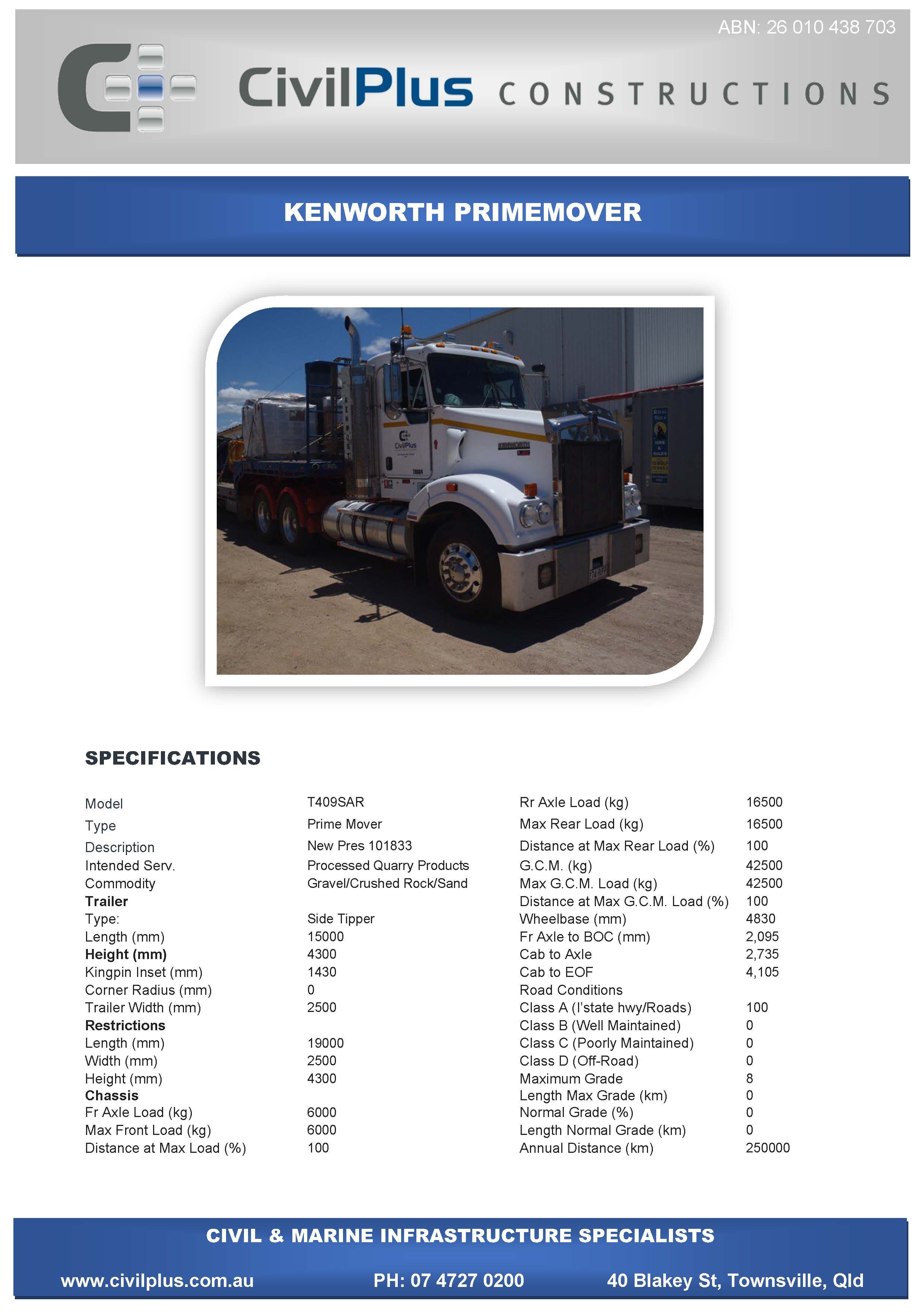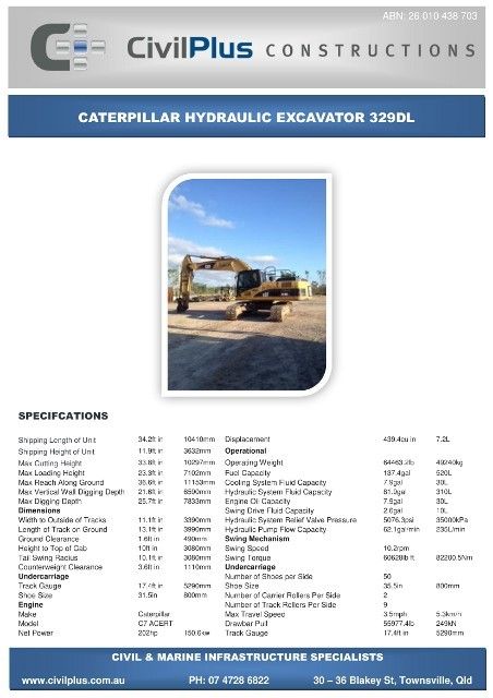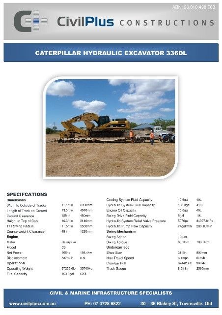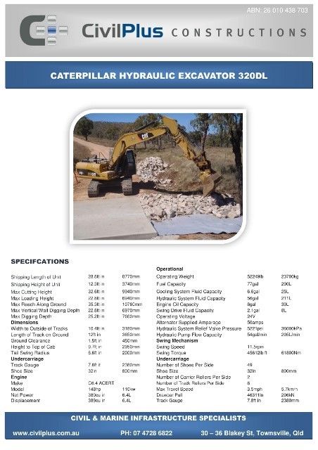 CivilPlus have an extensive list of modern plant and attachments for all types of civil and marine constructions. All excavators and backhoes are hydraulic burst protected and have rated SWL to comply with WHS Legislation. All plant and equipment is meticulously maintained and can be supplied with its full service and repair history which will provide peace of mind when it comes to reliable plant that meets WHS & Environmental Legislation.